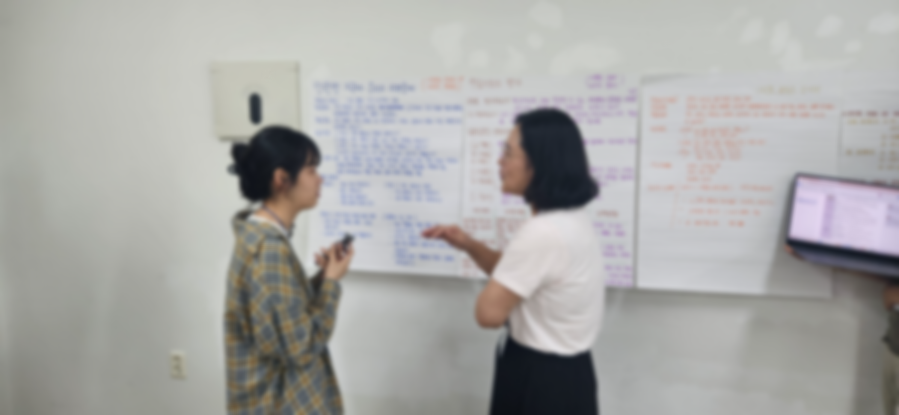 산출물들은 벽에 붙이고 포스터 발표/갤러리워크를 했습니다. 방학을 줄여가며 연수를 하느라 피로하고 의욕도 떨어질 법한데, 아주 진지하게 참여하셨습니다. 역시 대한민국 초등교육의 미래는...밝습니다!